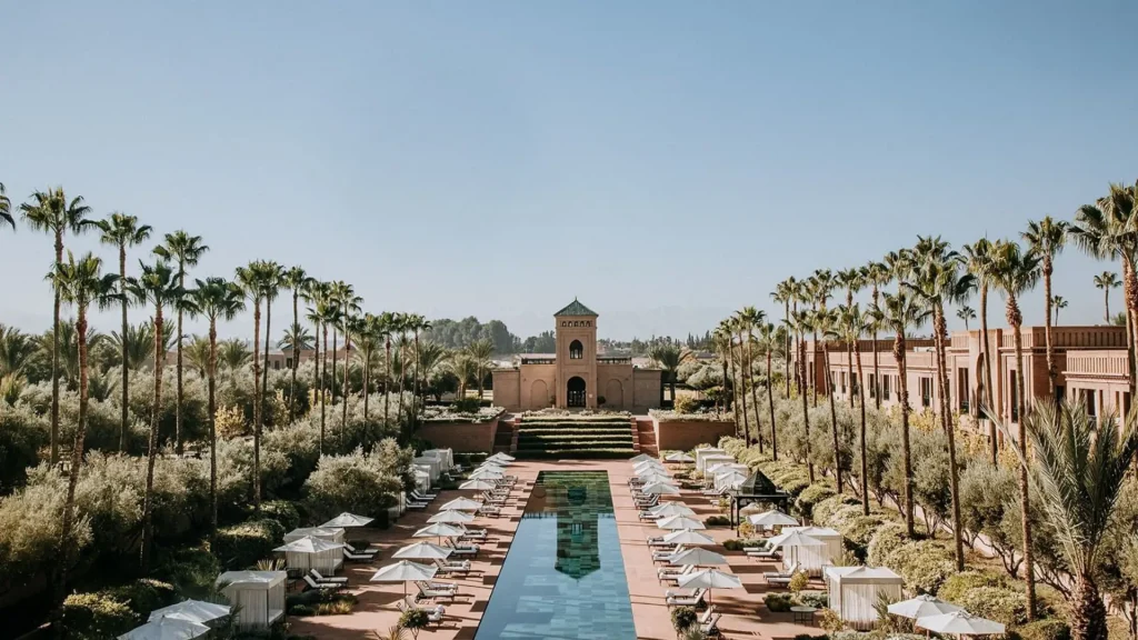 Set amidst olive groves and fragrant gardens, Mandarin Oriental Marrakech offers a serene and secluded retreat just minutes from the medina. Guests can choose from spacious villas with private pools or elegantly designed suites. The luxurious spa, fine dining experiences, and breathtaking views of the Atlas Mountains make this hotel a top choice for honeymooners and luxury seekers alike.
